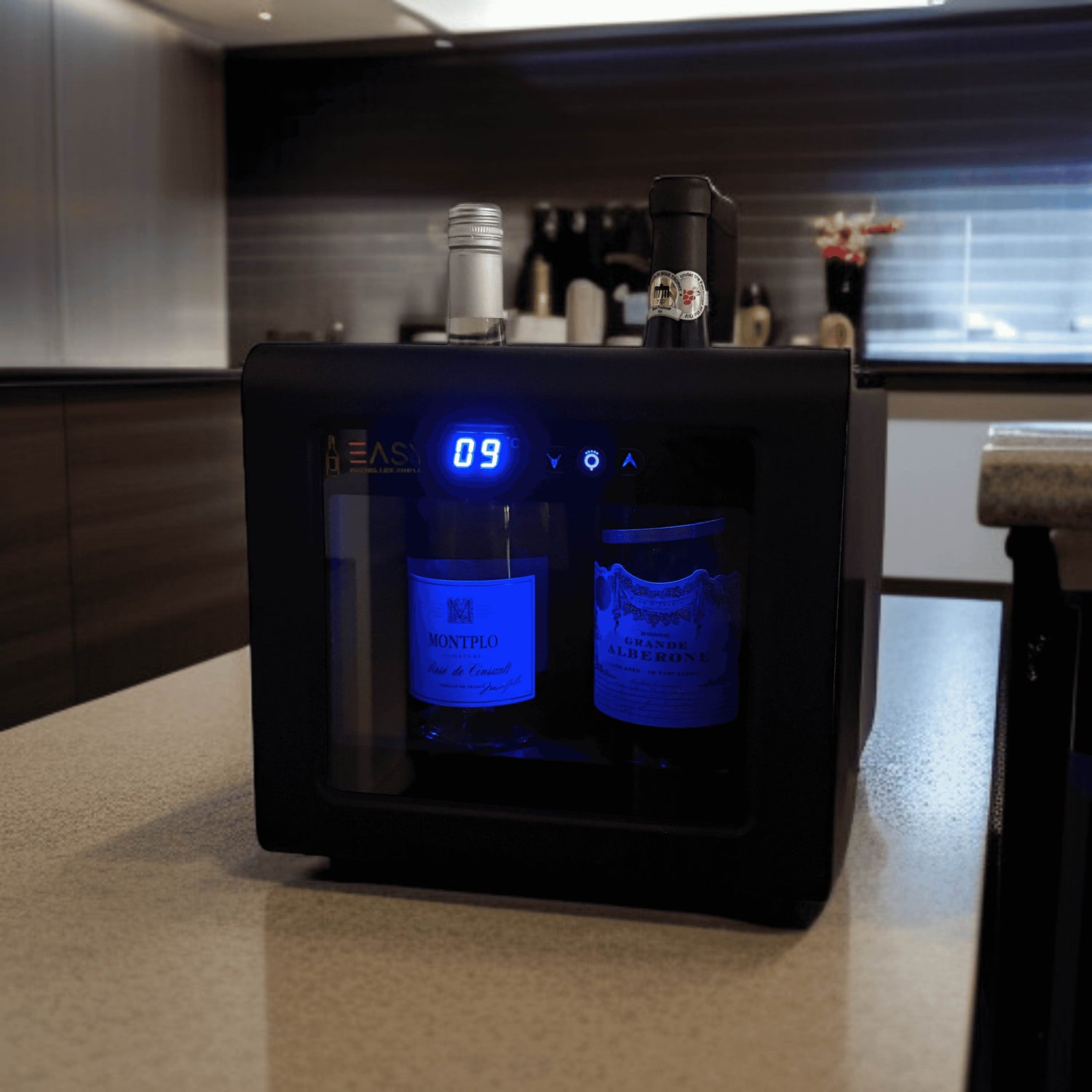 Moderni muotoilu yhdistettynä vaihdettavaan LED-sisävalaistukseen esittelee pullojasi tyylikkäästi ja tulee katseenvangitsijaksi joka tilanteessa.