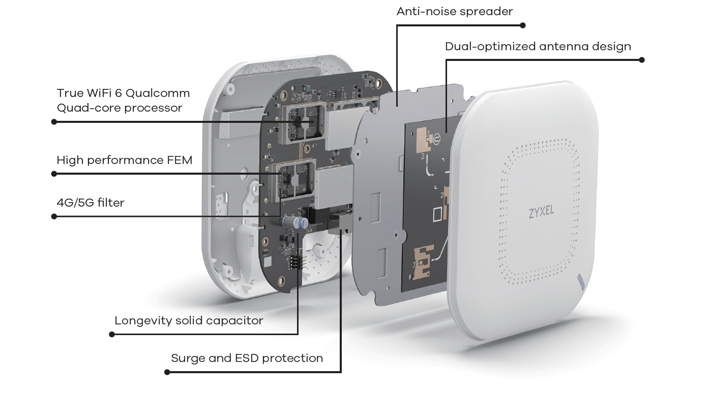 ✓ True WiFi 6 (802.11ax) -standardi ✓ Jopa 1,8 Gbps:n nopeus ✓ Ilmainen Nebula Cloud Management ✓ Power over Ethernet (PoE) ✓ Ihanteellinen pienille yrityksille
